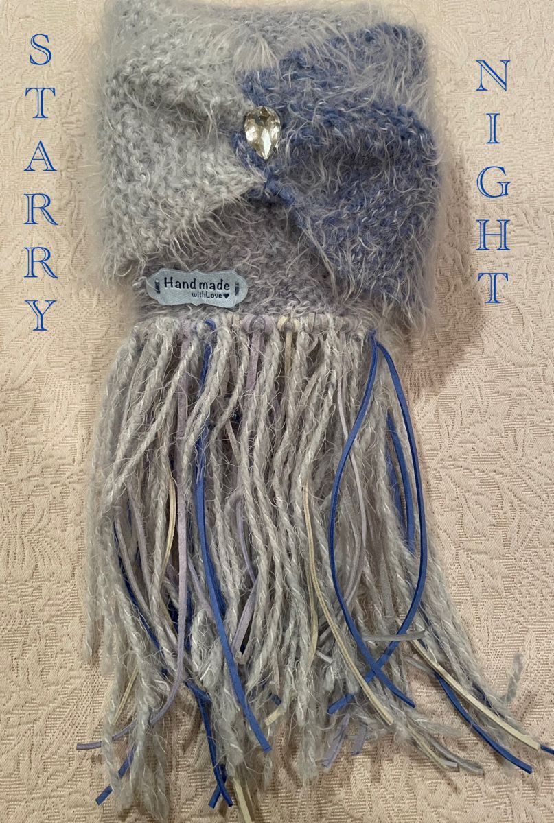 Handmade Knitted Scarves with Suede/Leather Fringes.